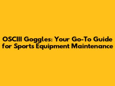 OSCIII Goggles: Ultimate Guide To Sports Equipment