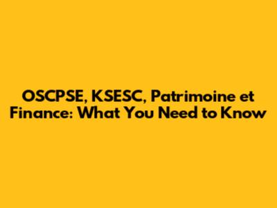 OSCPSE, KSESC, Patrimoine Et Finance: What You Need To Know