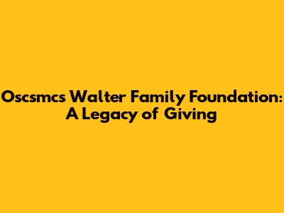 Oscsmcs Walter Family Foundation: A Legacy Of Giving