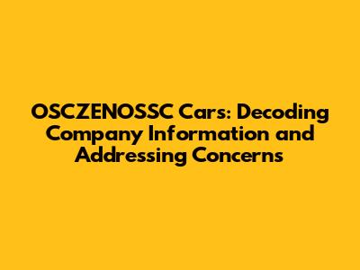 OSCZENOSSC Cars: Navigating Company Details And Issues