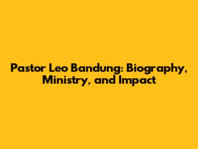 Pastor Leo Bandung: Biography, Ministry, And Impact