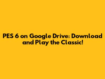 PES 6 On Google Drive: Download And Play The Classic!