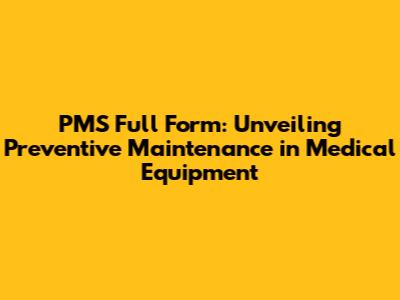 PMS Full Form: A Guide To Medical Equipment Maintenance
