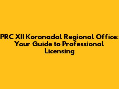 Q: Where is the PRC XII Koronadal Regional Office located? A: The office is typically located in Koronadal City. For the exact address, it’s best to check the official PRC website or contact the office directly.
