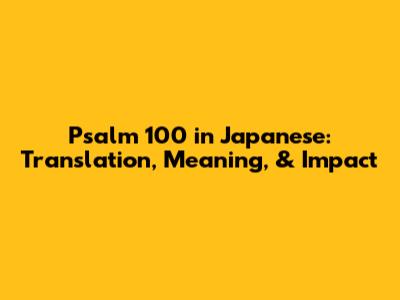 Psalm 100 In Japanese: Translation, Meaning, & Impact