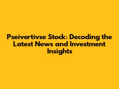 Pseivertivse Stock: Latest News & Investment Insights