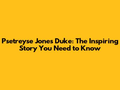 Psetreyse Jones Duke: The Inspiring Story You Need To Know