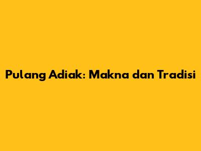 Pulang Adiak: Makna Dan Tradisi