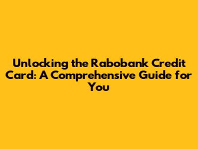 Rabobank Credit Card: Your Guide