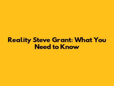 Reality Steve Grant: What You Need To Know
