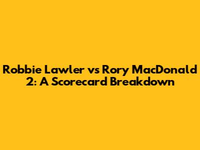 • Round 5: MacDonald (a very tight round he gave to Rory) This judge saw Lawler taking the middle rounds and potentially even the fifth, but perhaps gave Rory the first two and the fifth, showing how close it was. Or maybe he gave Rory the first, Lawler the second, Lawler the third, Lawler the fourth (10-8), and Rory the fifth. The key is that Lawler's big rounds were enough.