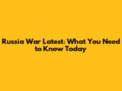 Russia War Latest: What You Need To Know Today