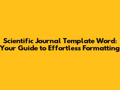 Are you diving into the world of academic publishing and need a scientific journal template word? Well, you're in the right place! Crafting a well-structured scientific journal article can be a daunting task, especially when formatting guidelines seem like a maze. But fear not, my friends! This article is your ultimate guide to finding, using, and even customizing Word templates that will make your life infinitely easier. We'll explore everything from where to find these gems to how to tweak them to perfectly match your target journal's requirements. Let's get started and transform your manuscript from a rough draft into a polished, publication-ready piece.