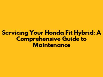Servicing Your Honda Fit Hybrid: A Complete Guide