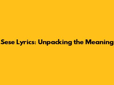 Sese Lyrics: Unpacking The Meaning