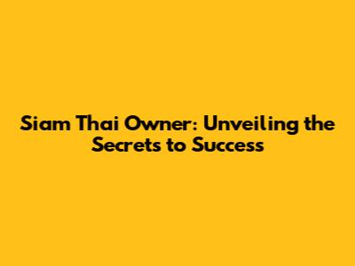Siam Thai Owner: Unveiling The Secrets To Success