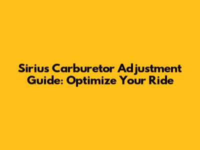 Sirius Carburetor Adjustment Guide: Optimize Your Ride