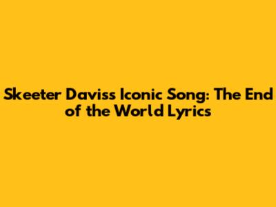 Skeeter Davis's Iconic Song: 'The End Of The World' Lyrics