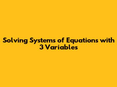 Solving Systems Of Equations With 3 Variables