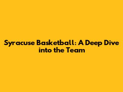 Let's dive deep into Syracuse basketball, guys! We're going to explore everything about this awesome team, from its history to its current stars and future prospects. Whether you're a die-hard Orange fan or just curious about college hoops, this is your ultimate guide.