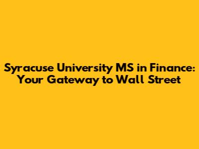 Syracuse University MS In Finance: Your Gateway To Wall Street