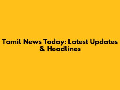 Tamil News Today: Latest Updates & Headlines