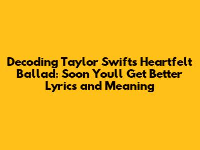 Overall, "Soon You'll Get Better" is more than just a song; it's a heartfelt prayer, a declaration of love, and a testament to the enduring power of hope. Taylor Swift has gifted us with a deeply personal and profoundly moving piece that will undoubtedly continue to resonate with listeners for years to come. It's a reminder that music has the power to heal, to connect, and to offer solace in times of need. So, crank up the volume, grab your tissues, and let Taylor's powerful lyrics and vulnerable vocals wash over you. This song is a reminder that even in the face of adversity, hope remains, and love endures. And remember, Swifties, we're all in this together! Taylor's willingness to share her personal struggles reminds us that vulnerability is a strength, and that by supporting each other, we can navigate even the most difficult challenges. This song serves as a reminder that it's okay to not be okay, and that seeking comfort and support from loved ones is essential. It's a testament to the power of human connection and the importance of cherishing the relationships we have. Moreover, "Soon You'll Get Better" is a call to action to be more compassionate and empathetic towards others who are going through difficult times. It encourages us to offer support, lend an ear, and show kindness to those who need it most. By creating a more supportive and understanding community, we can help each other navigate life's challenges with greater ease and resilience. In addition to its emotional impact, the song also raises awareness about the importance of healthcare and medical research. It highlights the role of pharmaceutical companies in developing treatments and therapies for serious illnesses, and it underscores the need for continued investment in these areas. By supporting medical research and advocating for access to quality healthcare, we can help improve the lives of those who are suffering from illness. Finally, "Soon You'll Get Better" is a reminder to appreciate the simple things in life and to cherish the moments we have with our loved ones. Life is precious and unpredictable, and it's important to make the most of every day. By focusing on gratitude and practicing mindfulness, we can cultivate greater joy and contentment in our lives. In conclusion, "Soon You'll Get Better" is a timeless masterpiece that will continue to inspire and uplift listeners for generations to come. It's a testament to the power of music to heal, to connect, and to offer hope in the face of adversity. So, let's continue to share this song with our loved ones and use it as a reminder to cherish each other and to support those who are going through difficult times.