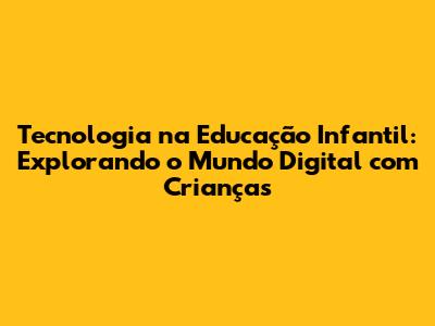 Tecnologia Na Educação Infantil: Explorando O Mundo Digital Com Crianças