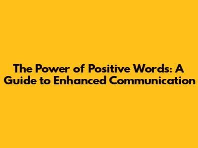 The Power Of Positive Words: A Guide To Enhanced Communication