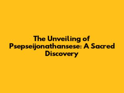 The Unveiling Of Psepseijonathansese: A Sacred Discovery