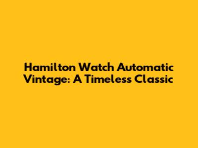 Timeless Style: Exploring Hamilton Automatic Vintage Watches
