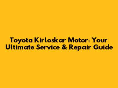 Toyota Kirloskar Motor: Your Ultimate Service & Repair Guide