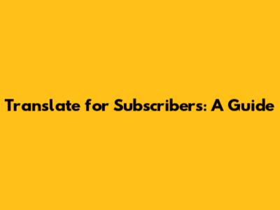 Translate For Subscribers: A Guide