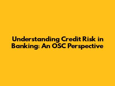 Understanding Credit Risk In Banking: An OSC Perspective