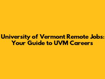 University Of Vermont Remote Jobs: Your Guide To UVM Careers