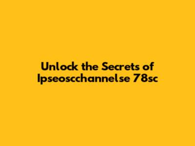 Unlock The Secrets Of Ipseoscchannelse 78sc
