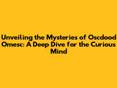 Unveiling the Mysteries of Oscdood Omesc: A Deep Dive for the Curious Mind