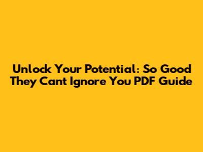 Unlock Your Potential: 'So Good They Can't Ignore You' PDF Guide