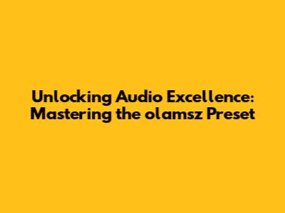 Unlocking Audio Excellence: Mastering The Olamsz Preset