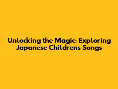 Unlocking The Magic: Exploring Japanese Children's Songs
