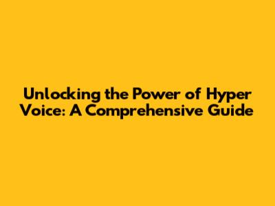 Unlocking The Power Of Hyper Voice: A Comprehensive Guide