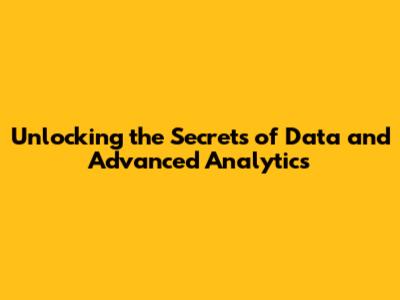 Unlocking The Secrets Of Data And Advanced Analytics