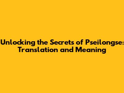 Unlocking The Secrets Of Pseilongse: Translation And Meaning