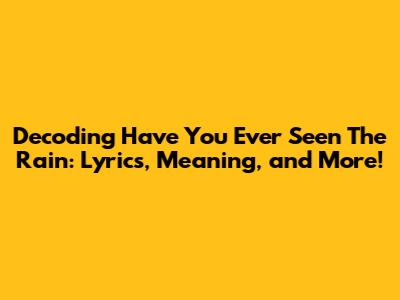 Unpacking 'Have You Ever Seen The Rain' Lyrics