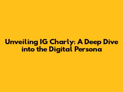 Unveiling IG Charly: A Deep Dive Into The Digital Persona