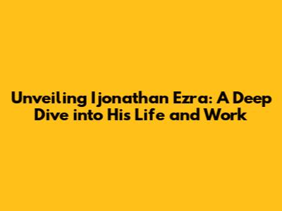 Unveiling Ijonathan Ezra: A Deep Dive Into His Life And Work