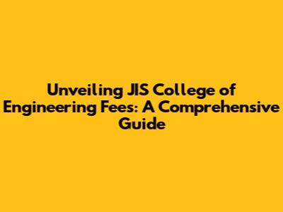 Unveiling JIS College Of Engineering Fees: A Comprehensive Guide