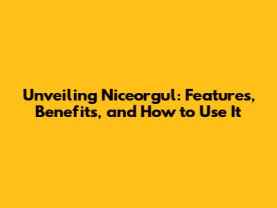 Unveiling Niceorgul: Features, Benefits, And How To Use It