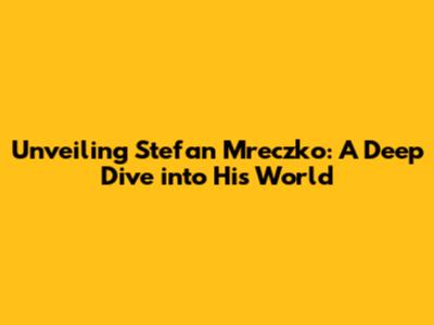 Unveiling Stefan Mreczko: A Deep Dive Into His World