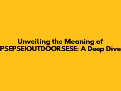 Unveiling The Meaning Of PSEPSEIOUTDOORSESE: A Deep Dive